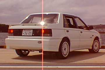 中古車として買った時からついていたフルエアロパーツ。つい最近まではメーカー不明だったんですが、このページのpreviewを作った時点でISUZU-MLの方に確認したところ、ORIENT SPEED yR kit というものであるらしいことが判明しました(^^;。 なんと定価で30万円もするというキットらしいです。 わずか15万円で買った車ですが、たいへんな価値があったようです。 |