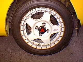 ADVANが供給するアルミホイール。ADVAN ART。BEATはPCDやオフセットが特殊なため、なかなか適合するホイールがない。 BEAT用として有名なのは、エンケイのコンペティションS。しかし、デザインが気に入らなかったので、本屋やカーショップなどを捜し歩く。その末にやっと見つけたのがこのホイール。ホイールの一番外周の部分がやたら洗いにくいのが難点。ブレーキパッドをスポーツ用にしているので、汚れるのは早いし、洗いにくいのが悩みの種となった。 |